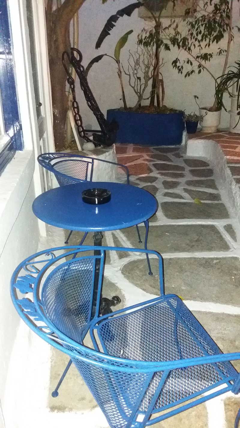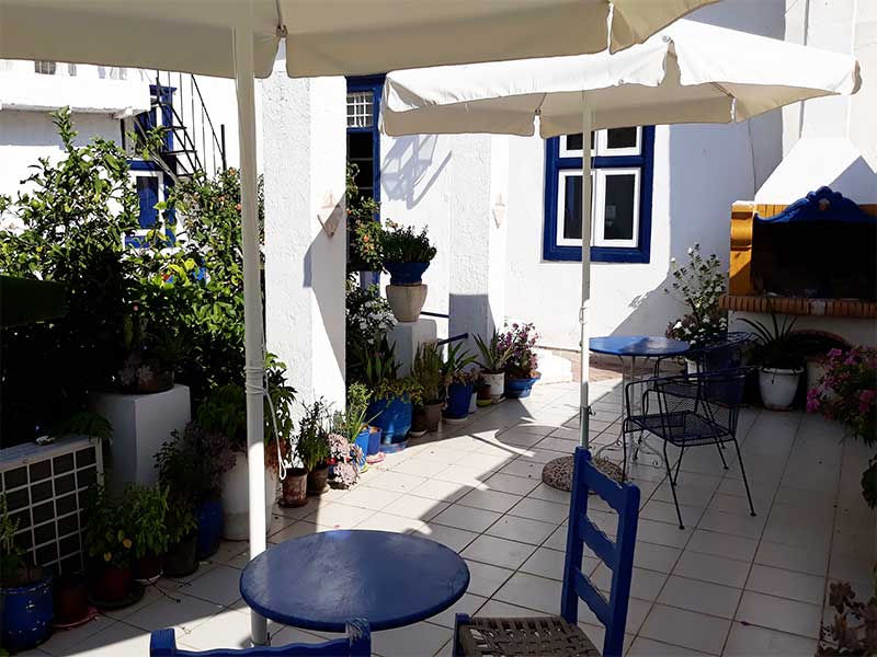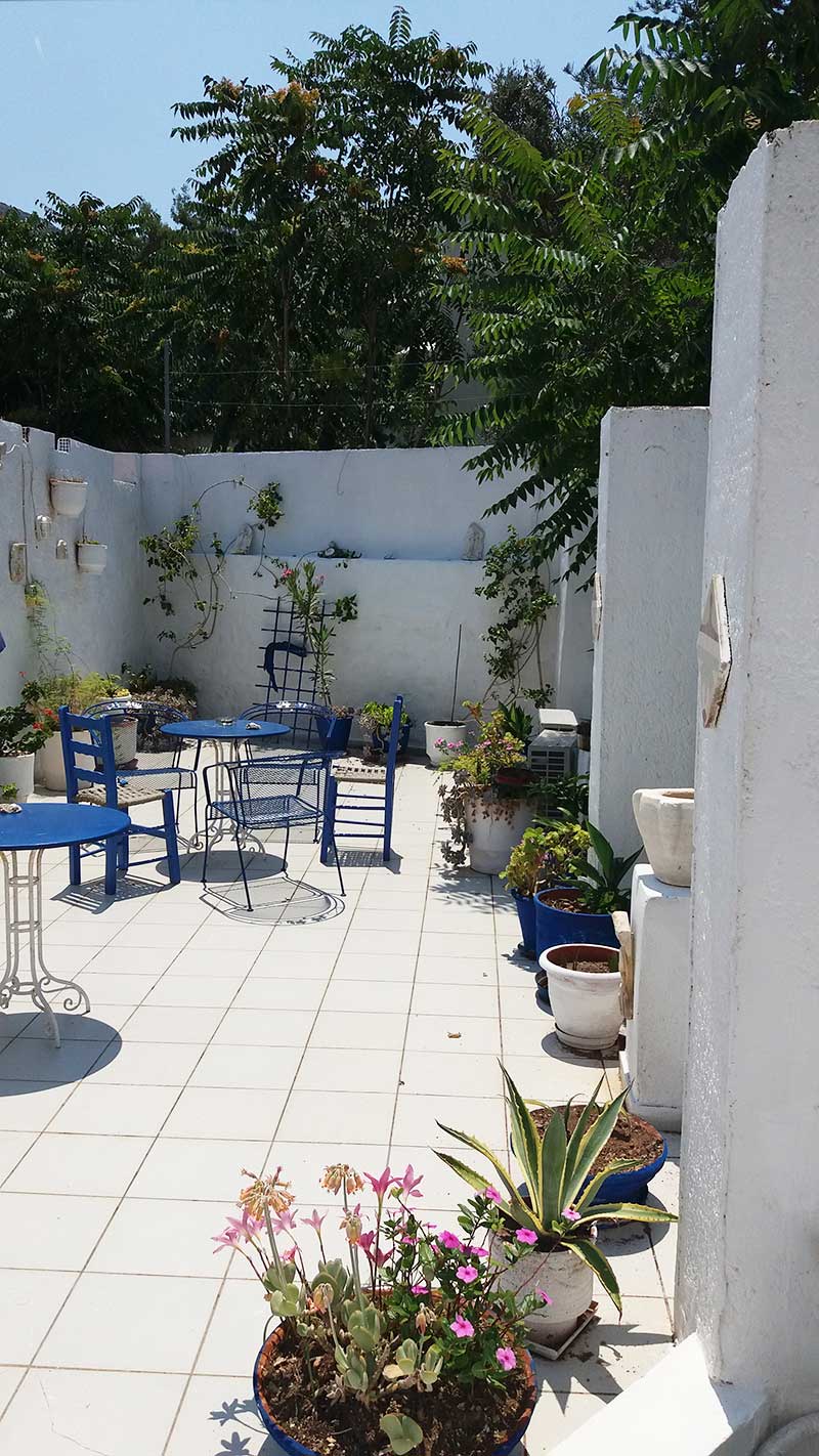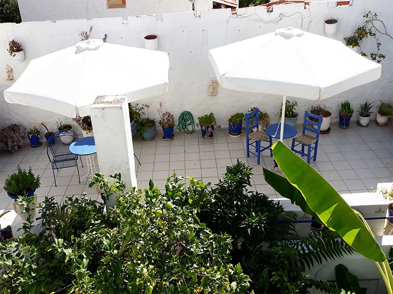 Στο ξενώνα υπάρχει εσωτερική αυλή, πολύ όμορφα διακοσμημένη, με πολλά φυτά και λουλούδια, καθώς επίσης ανετη βεράντα με τραπεζάκια και καρέκλες. Στην βεράντα υπάρχει η ψησταριά μας που μπορείτε να την χρησιμοποιήσετε αν θελήσετε.