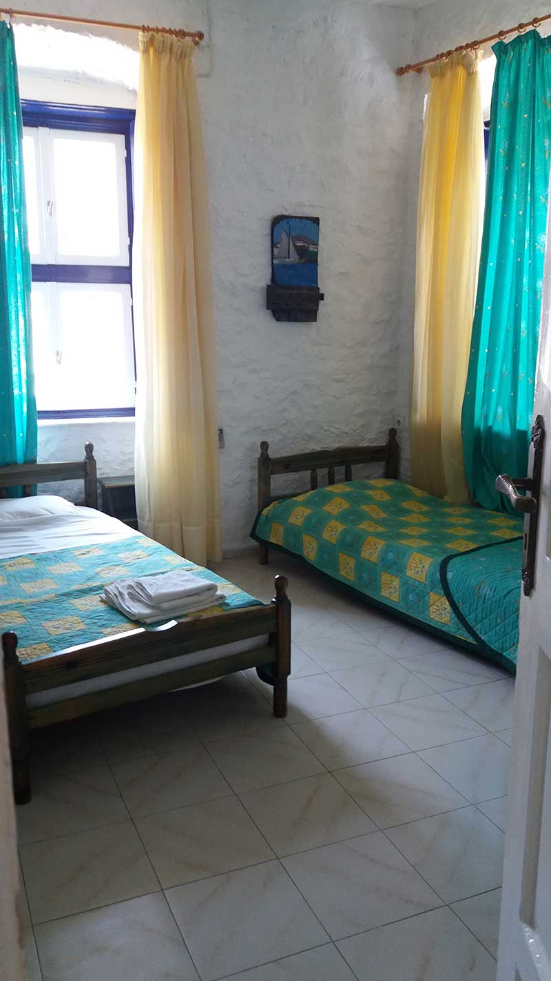 Το σπίτι είναι μια διόροφη κατοικία κατάλληλα διαρρυθμισμένη σε δέκα (10) ενοικιαζόμενα δωμάτια. Υπάρχουν δωμάτια μικρά, μεγάλα, παραδοσιακά ή κλασσικά, δίκλινα, τρίκλινα, ανάλογα με τις οικονομικές σας δυνατότητες.