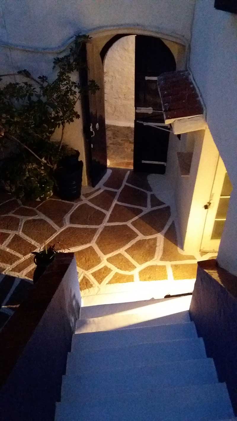 Το σπίτι βρίσκεται σε μια πολύ ήσυχη περιοχή που απέχει μόνο 5 λεπτά με τα πόδια από το λιμάνι. Ο δρόμος είναι ισόπεδος και ο επισκέπτης δε συναντά σκαλάκια για να φθάσει στο Ξενώνα.