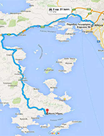 Οδηγείτε για 30 περίπου λεπτά και φθάνετε στη διασταύρωση για την Επίδαυρο. Λίγο πριν θα δείτε πινακίδες προς Πόρο ή Σπέτσες. Στη διασταύρωση θα στρίψετε δεξιά και αμέσως κάτω από την γέφυρα αριστερά.